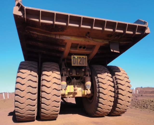 Para evitar a sobrecarga dos pneus, também é importante considerar os fatores ambientais do local da mina, como as condições da área de escavação da mina, e de acordo com a folha de carga fornecida pelo usuário do pneu, o material deve ser distribuído uniformemente no caminhão. (Veja à esquerda FIG.)